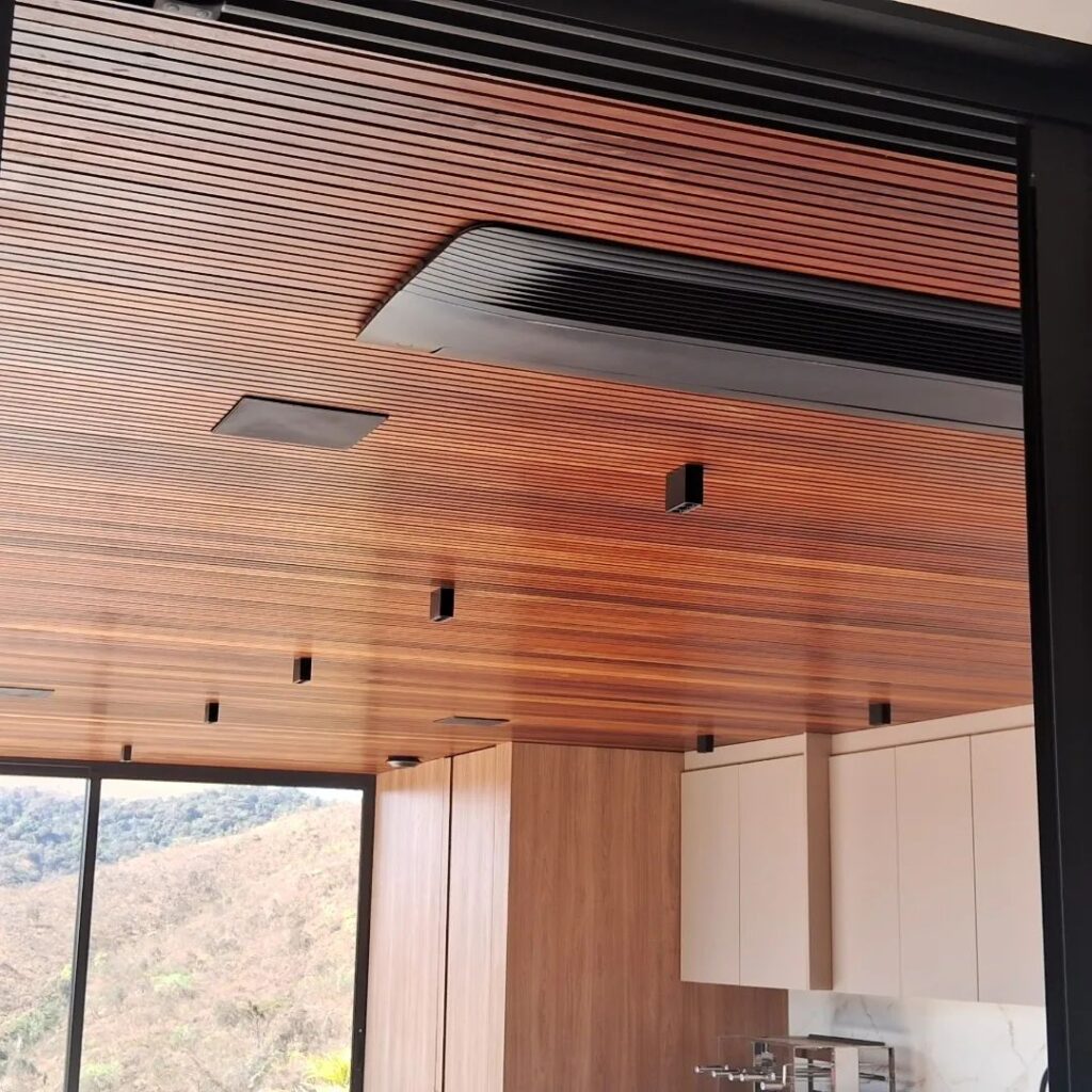 O forro ripado é um revestimento ou estrutura feita de tiras finas e estreitas de madeira, dispostas lado a lado com espaçamentos regulares, criando um painel com textura, profundidade e um visual moderno. O ripado se tornou um dos queridinhos da arquitetura contemporânea, especialmente em projetos que buscam sofisticação e identidade visual. As espécies nobres mais comuns são: