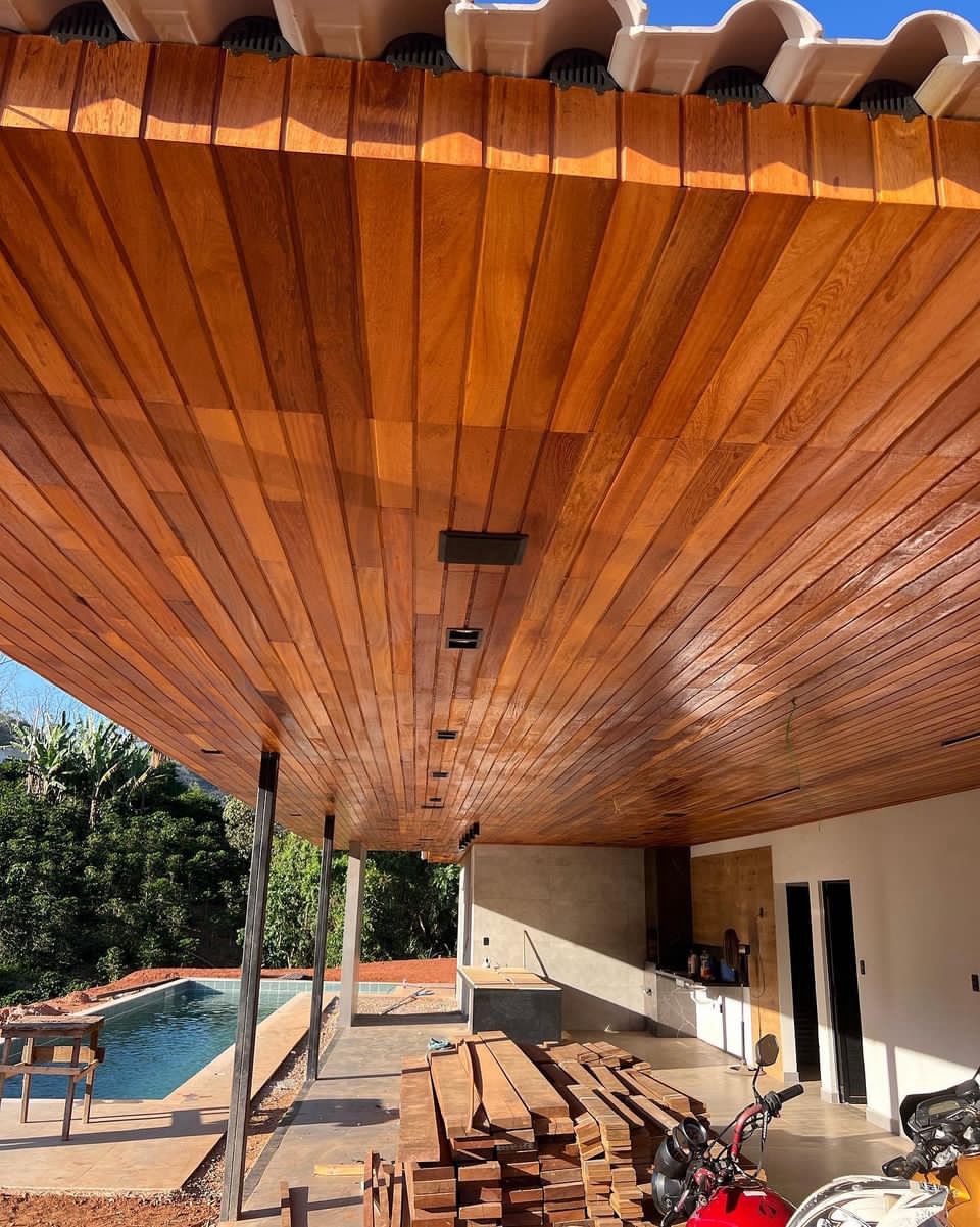Os forros em áreas externas devem ser utilizados com muito cuidado. E o tipo de madeira utilizado deve ser uma madeira altamente resistente.