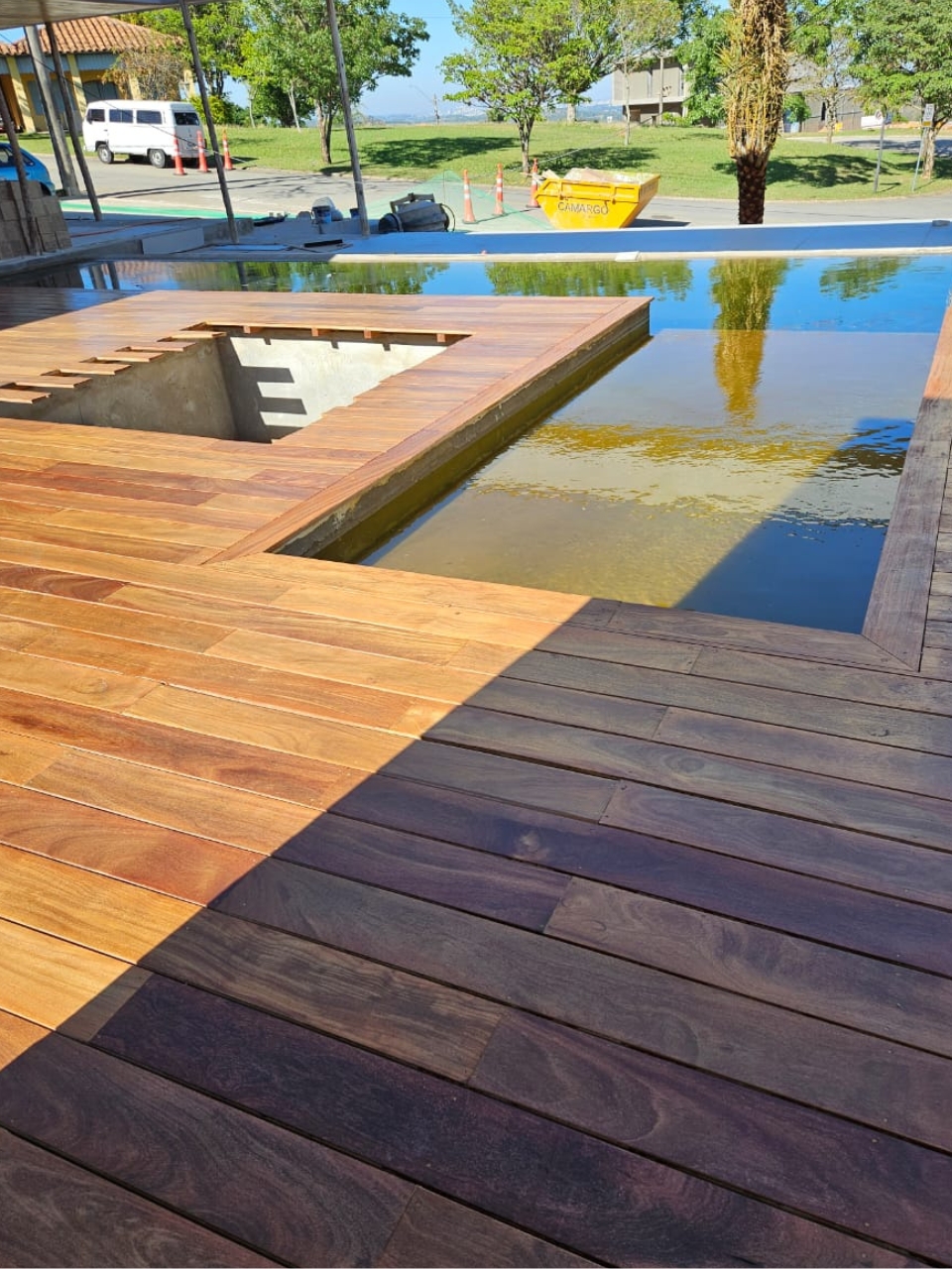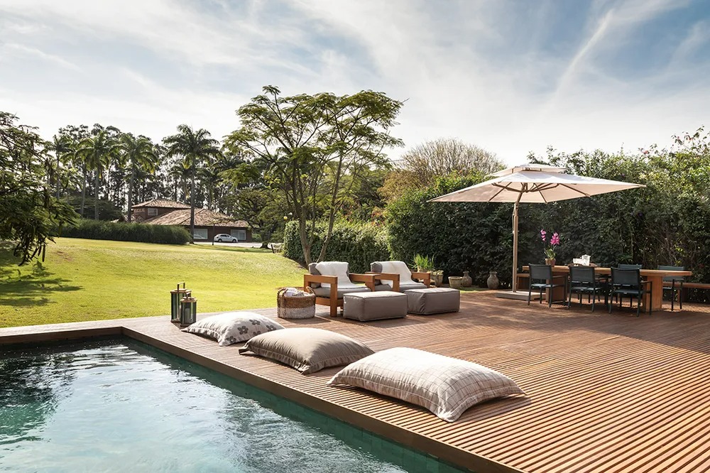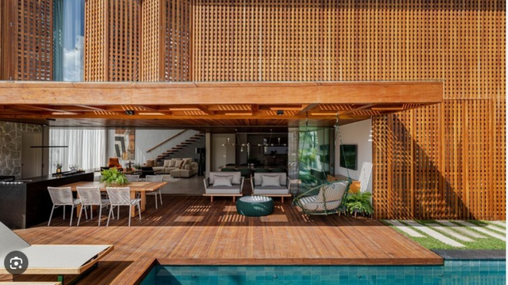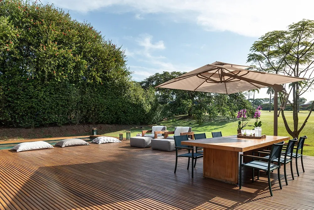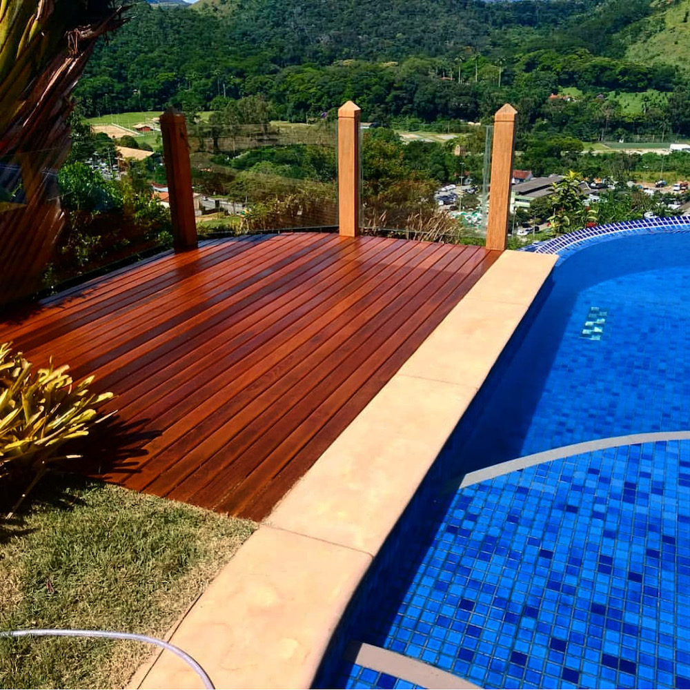 Sim, desde que seja a madeira indicada para área externa. A escolha correta do material é o que garante durabilidade nessas condições.