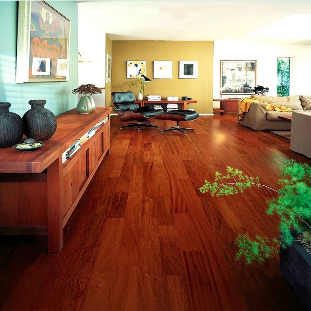 O jatobá é uma das madeiras mais duras que existe. Essa dureza o torna forte o suficiente para ser usado até mesmo nas áreas de tráfego intenso da casa. Use-o em uma sala de jantar sem medo de cadeiras arranhando o chão. Com sua madeira avermelhada e seus veios com desenhos únicos ele é uma excelente escolha para quem deseja uma madeira que possa ser utilizada em um ambiente tanto quanto rústico quanto elegante.