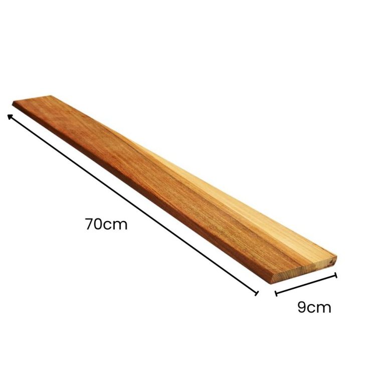As peças de 70cm podem apresentar pequenas variações de cor, manchas naturais ou leves imperfeições visuais. A madeira é seca em estufa, garantindo ausência de cupins e maior estabilidade.