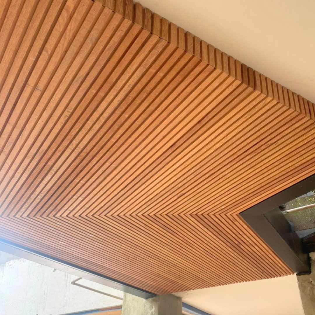 O diferencial deste ripado está no encaixe TG4, que proporciona um acabamento impecável. Seu sistema de encaixe macho e fêmea nas laterais, parte superior e inferior garante maior precisão e praticidade na instalação, resultando em um visual uniforme e sofisticado. Ideal para projetos modernos, o Ripado de Madeira Angelim Extra atende perfeitamente às exigências estéticas e funcionais de forros e revestimentos internos.